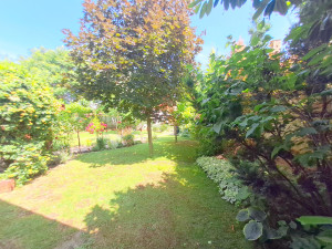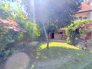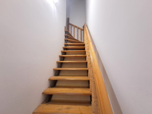 A lakás egyedi kialakításának köszönhetően az utcafronti bejáratból a földszinti előszobába érkezünk, majd a közlekedőn keresztül egy 6 és 3 m2-es tárolóhelyiséget fedezhetünk fel, amelyből a kisebb magában foglalja a gépészeti helyiséget is. E szintről jutunk a kerámiával burkolt fedett teraszra, amely a nyugalmas életteret biztosító virágoskerttel kapcsolja össze az otthont. Klasszikus vonalvezetést prezentáló fa lépcsők vezetnek az első emeletre, ahol folyosó, 2 nagyméretű szoba, konyha, spájz, fürdőszoba, különálló WC található. Az ingatlan különlegességét a beépítésre alkalmas 50 m2-es tetőtér jelenti, amely több szoba, közösségi tér, nappali, ezen belül egyedi elképzelések megvalósítását kínálják.